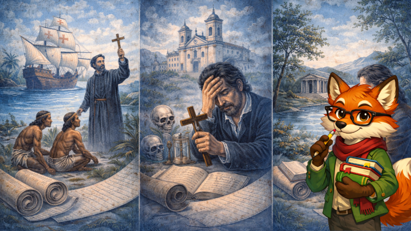 Olá, amigos e alunos do blog A Escola Literária, compreender as diferenças entre Quinhentismo, Barroco e Arcadismo é essencial para interpretar textos da Literatura Colonial Brasileira e acertar questões de vestibular. Embora pertençam ao mesmo período histórico geral — o Brasil Colônia — esses movimentos apresentam estilos, linguagens e intenções estéticas bastante distintas.