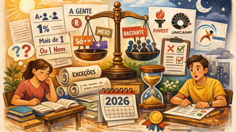 A concordância verbal e nominal é um dos temas mais cobrados nas provas de gramática dos principais vestibulares de 2026, como Fuvest, Unicamp e Enem. Dominar não apenas as regras básicas, mas principalmente os casos especiais e as exceções é fundamental para evitar erros que podem derrubar a nota em questões de análise sintática e correção textual. Essas pegadinhas exigem atenção redobrada do estudante.