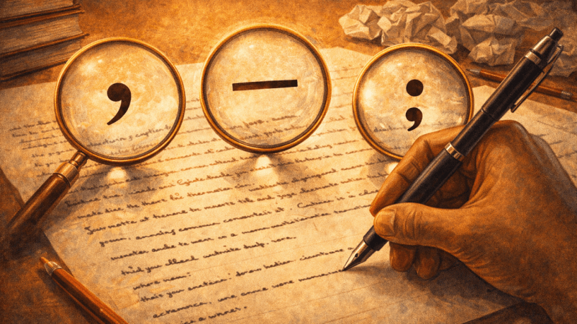 Qual sinal de pontuação você tem mais dificuldade em usar corretamente no texto dissertativo — a vírgula, o travessão ou o ponto-e-vírgula? Compartilhe nos comentários um exemplo de erro que já cometeu ou uma dúvida frequente.