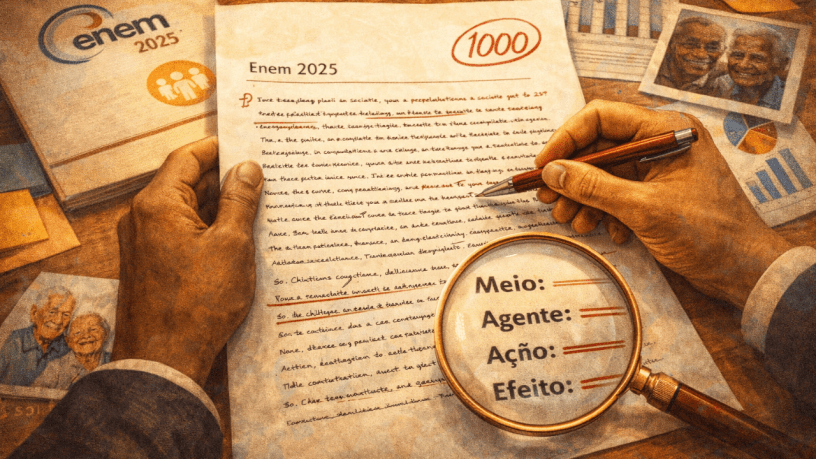 Analisar uma redação que tirou nota 1000 no Enem é uma das melhores formas de entender o que a banca realmente valoriza. No Enem 2025, o tema proposto foi “Perspectivas acerca do envelhecimento na sociedade brasileira”. Vamos dissecar uma redação real que alcançou a pontuação máxima, destacando as estratégias que a tornaram excepcional em estrutura, repertório e proposta de intervenção.