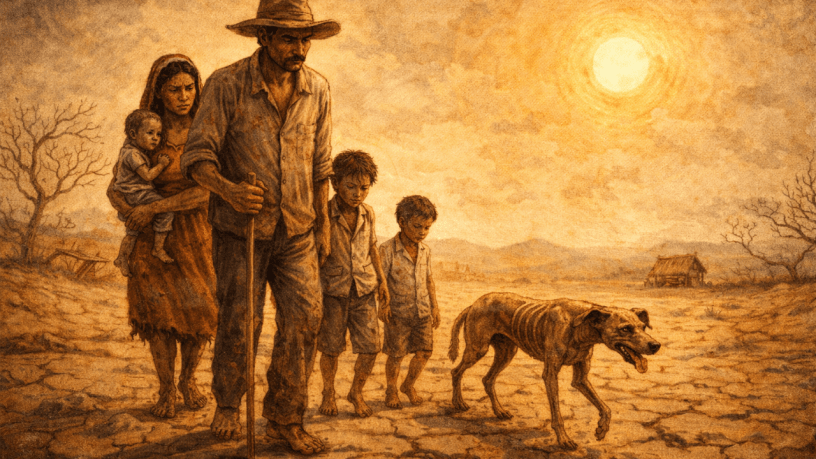 Vidas Secas, publicado por Graciliano Ramos em 1938, é uma das obras mais representativas do romance social brasileiro do século XX e continua sendo uma das mais cobradas nos vestibulares de 2026. A narrativa acompanha a dura jornada da família de Fabiano — um vaqueiro analfabeto —, sua mulher Sinha Vitória e seus dois filhos pelo sertão nordestino em busca de sobrevivência durante uma grande seca. A obra é um marco do regionalismo e do realismo social.